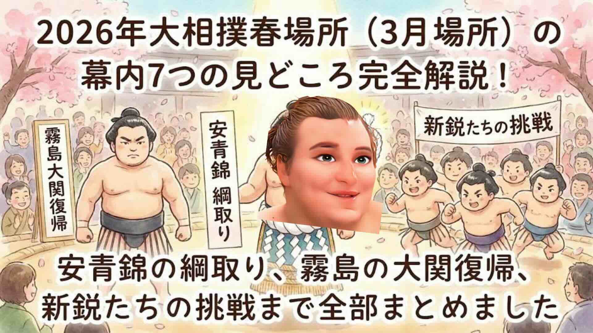 年寄株の基礎知識から2025年最新版の所有者一覧、貸借状況、取得条件、名跡の変遷まで詳しく解説。相撲制度の全体像が見える!2026年大相撲春場所(3月場所)の幕内7つの見どころ完全解説!安青錦の綱取り、霧島の大関復帰、新鋭たちの挑戦まで全部まとめました