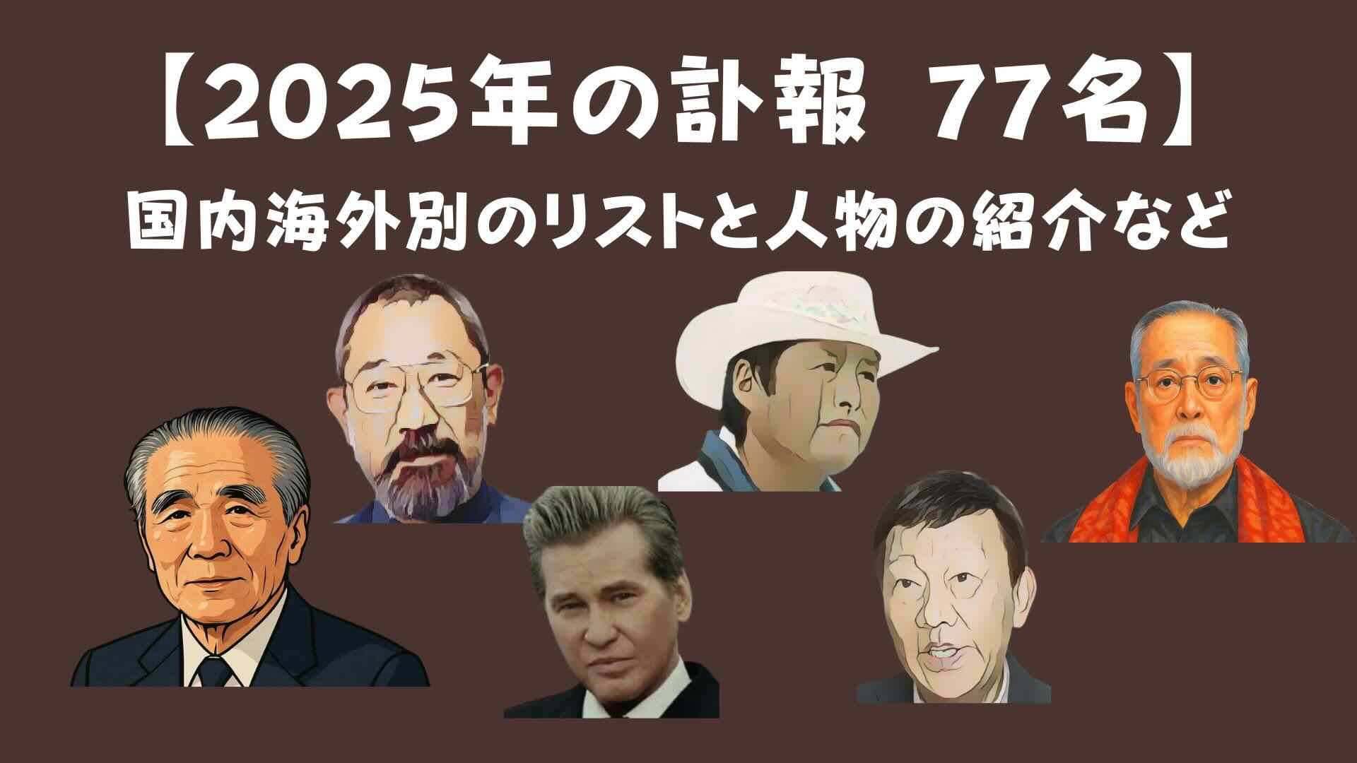 - 2025年に亡くなった国内外の著名人を一覧で把握できます