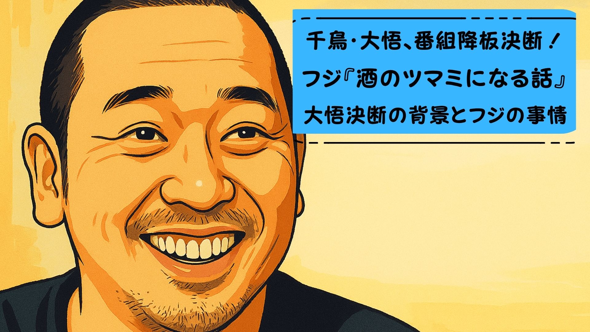 千鳥の大悟が『酒のツマミになる話』の降板を決断、番組終了に至った経緯を徹底解説。松本人志コスプレお蔵入りの真相、フジテレビのコンプラと芸人の関係、そして今後の千鳥の行方を考察。