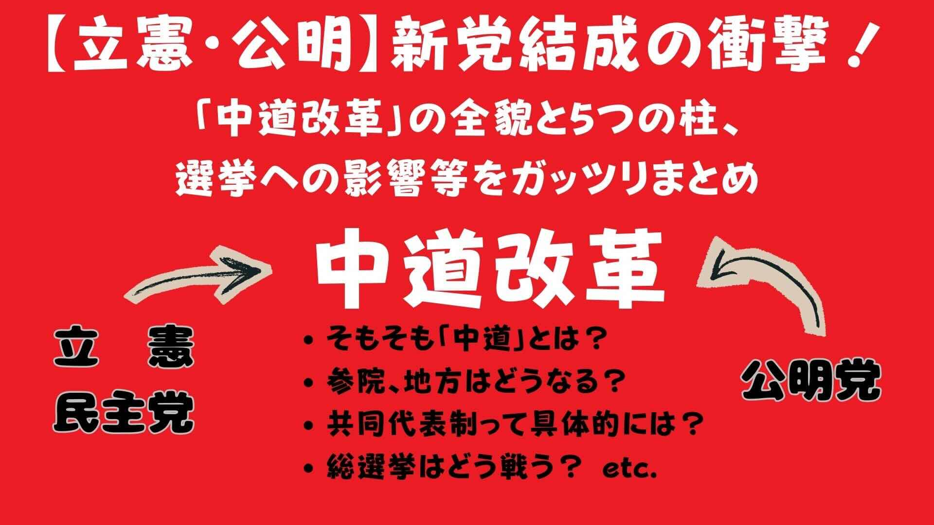 【立憲・公明】新党結成の衝撃!「中道改革」の全貌と5つの柱、選挙への影響等をガッツリまとめ