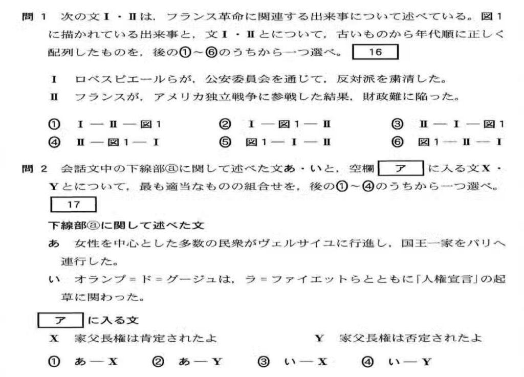 • 出題内容:「バスティーユへ!」の名シーンと、ジェンダー論を絡めた良問。革命の流れと社会構造の両方を問う、多層的な設問でした。
