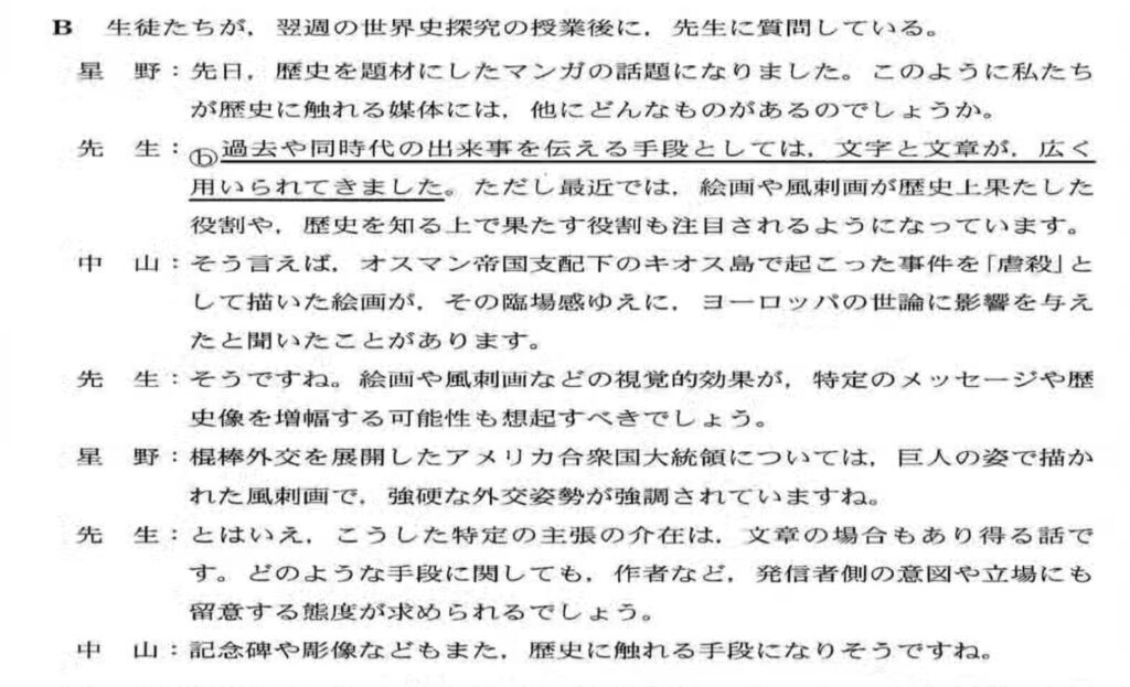 「歴史総合・世界史探究」の大問の3番目(第3問)で出題されました。この第3問の冒頭で、複数の資料の一つとして漫画のコマが使用されました。