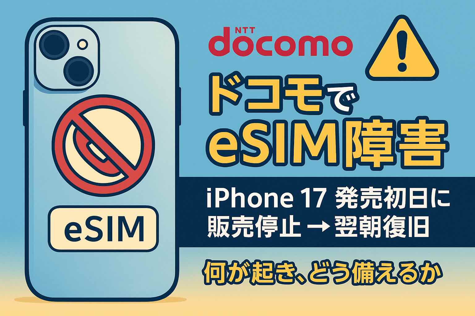 - ドコモはeSIM申込の停止を行い、iPhone 17 / iPhone Air などの販売も一時停止(“eSIM発行を伴う販売”の停止)。(ケータイ Watch)