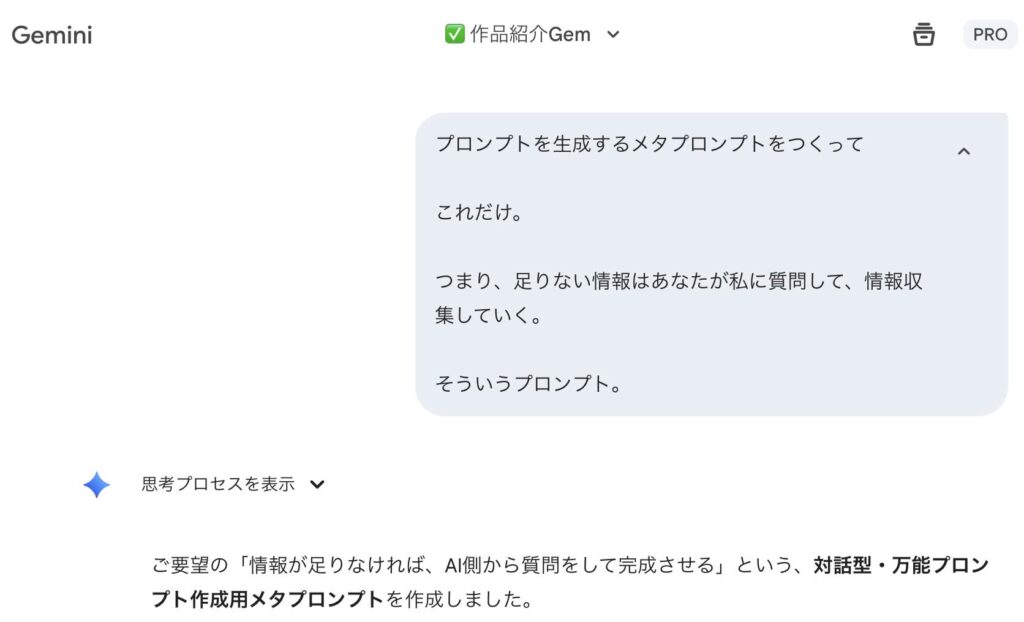 そして、このGemを実行することで、あなたが必要としているプロンプトを作ってくれます。