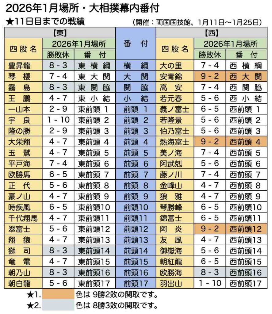 11日目までの幕内成績です。