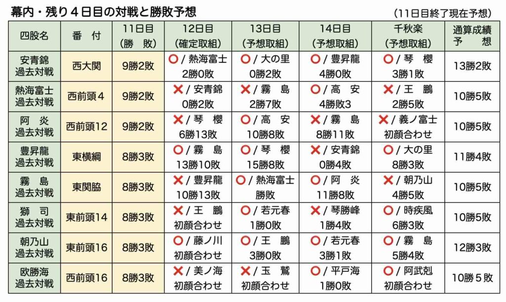 11日目までの幕内成績