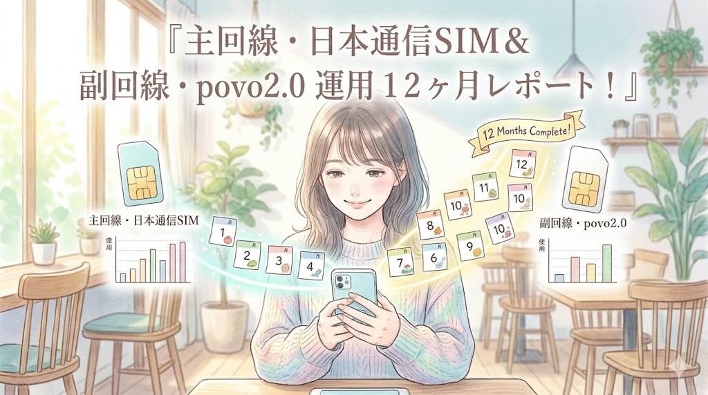 主回線・日本通信SIM&副回線・povo2.0運用12ヶ月レポート!