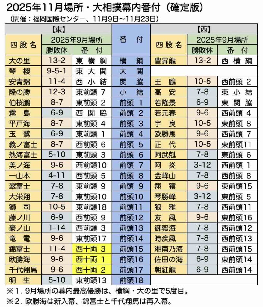 2025年11月場所(九州場所)が、11月9日(日)から始まります。