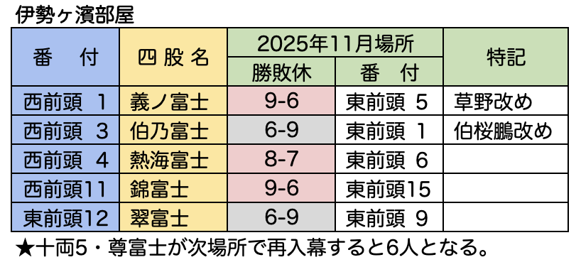 - 三段目・泉翔鵬→泉富士(いずみふじ)